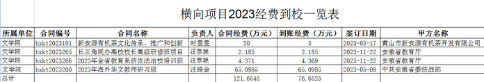 横向项目2023经费到校一览表