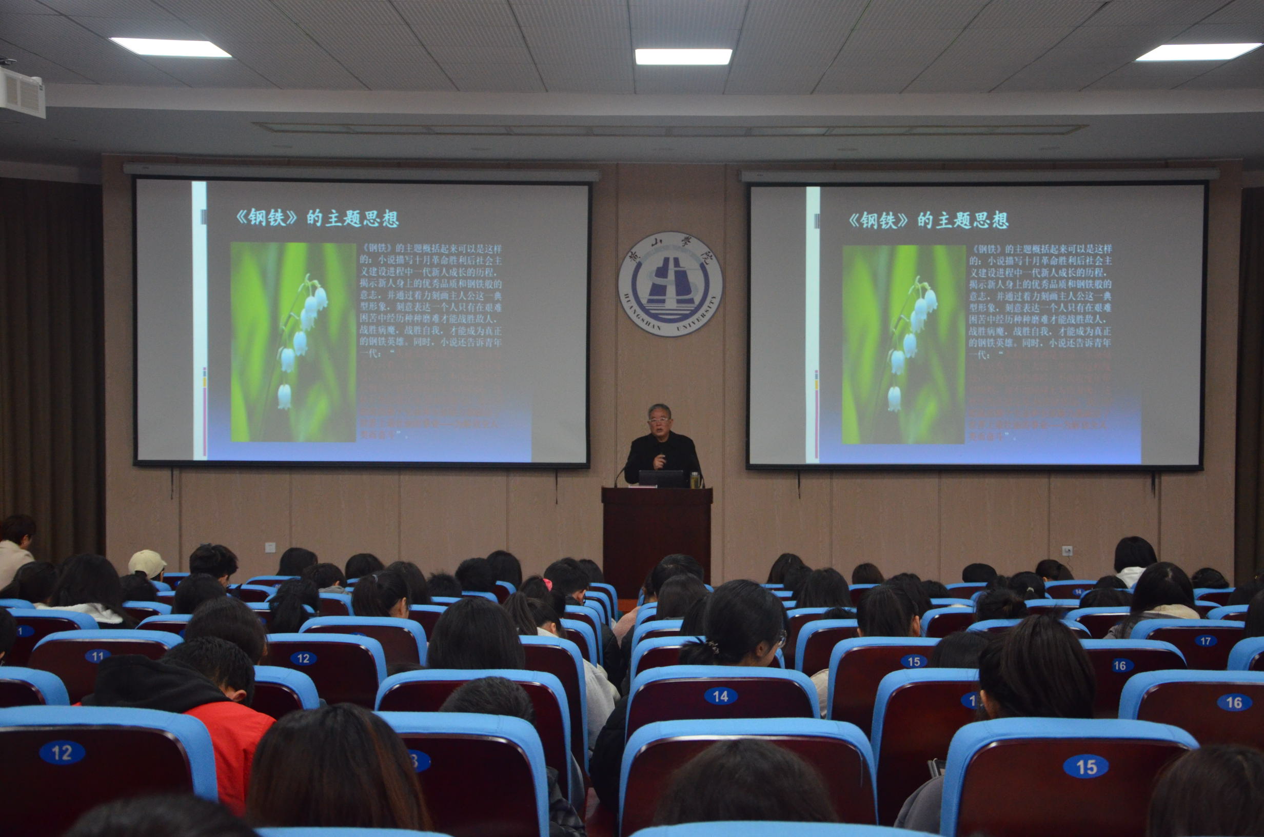 吴嘉佑教授从译《钢铁》、学保尔和永不言败三个方面,讲述了自己艰辛而愉悦的译著历程;生动分析了保尔柯察金历尽艰难万苦依然坚强勇敢、自强不息、凭借钢铁般意志投身革命实践的英雄形象;剖析了保尔平凡而伟大的思想成长历程,揭示了小说的历史和现实意义。激励青年学生,要以保尔为榜样,不忘初心,勇担使命,不畏险阻,坚毅前行。报告观点鲜明、论述严谨。报告现场气氛热烈,掌声不断。