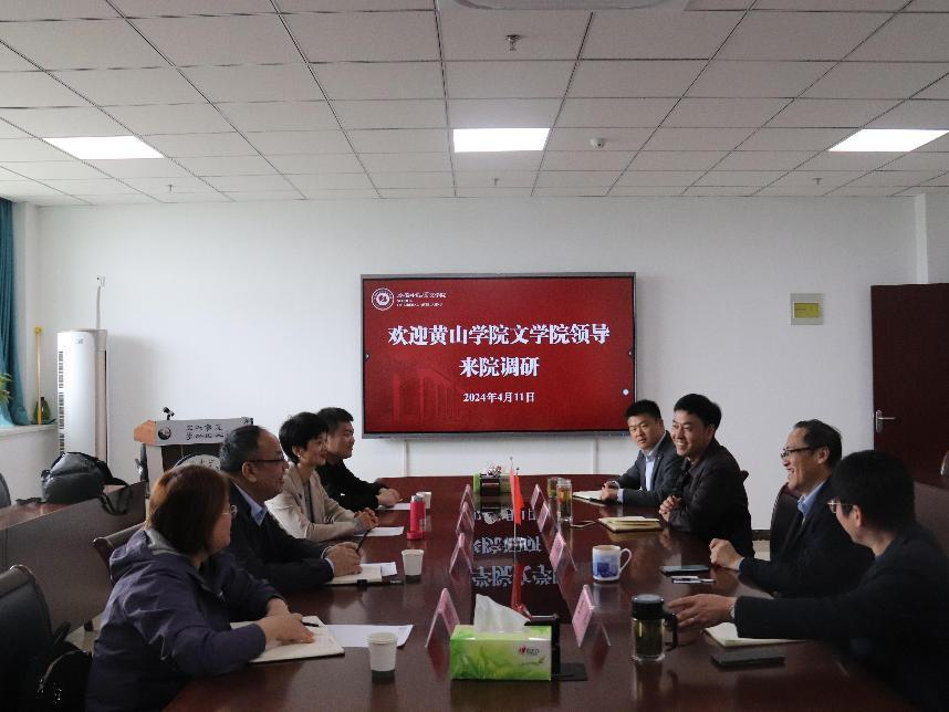 4月11日上午,太阳集团tyc151cc院长沈昌明、党总支副书记周志荣一行四人赴安徽师范大学太阳集团tyc151cc开展学科建设与硕士研究生培养调研活动。安徽师范大学太阳集团tyc151cc原院长储泰松,党委副书记戴和圣(主持)、院党委副书记刘飞、副院长李伟等参加了座谈。