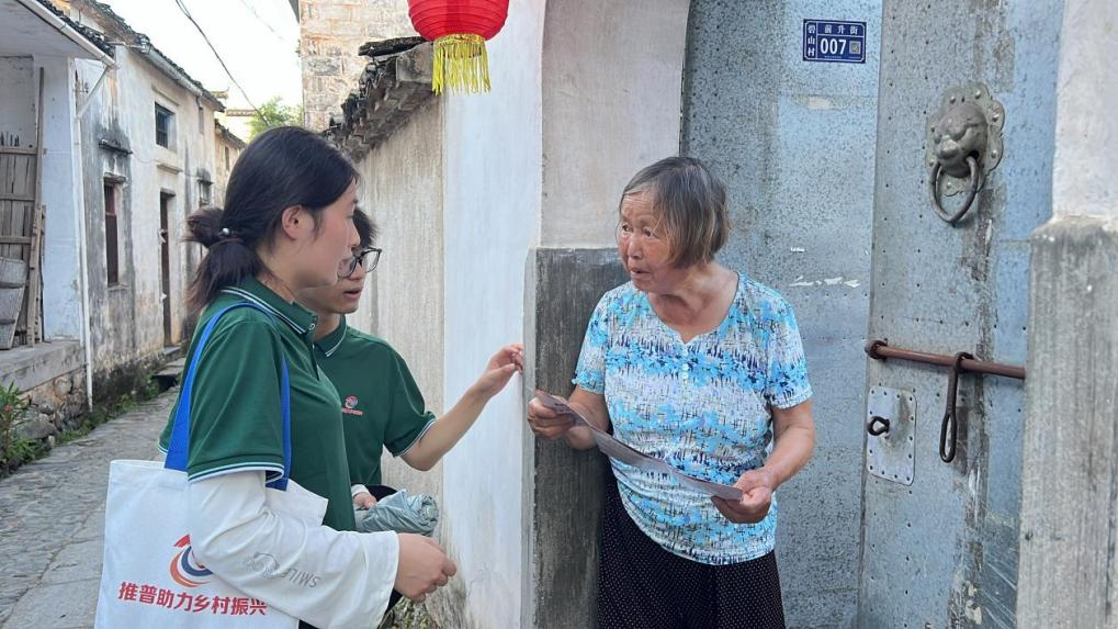 在碧山村,队员们还走村入户,对当地村民开展调研,与村民们亲切交谈,发放普通话宣传册、调查问卷,深入了解当地群众的普通话使用情况以及学习普通话的意愿与需求,帮助村民了解更多的普通话知识,宣传推广说好普通话的重要意义,同时,随着碧山村旅游发展的逐步深入,帮助他们更好展现自身形象和服务态度,提升游客体验和服务口碑,促进乡村振兴,助推黄山旅游发展。