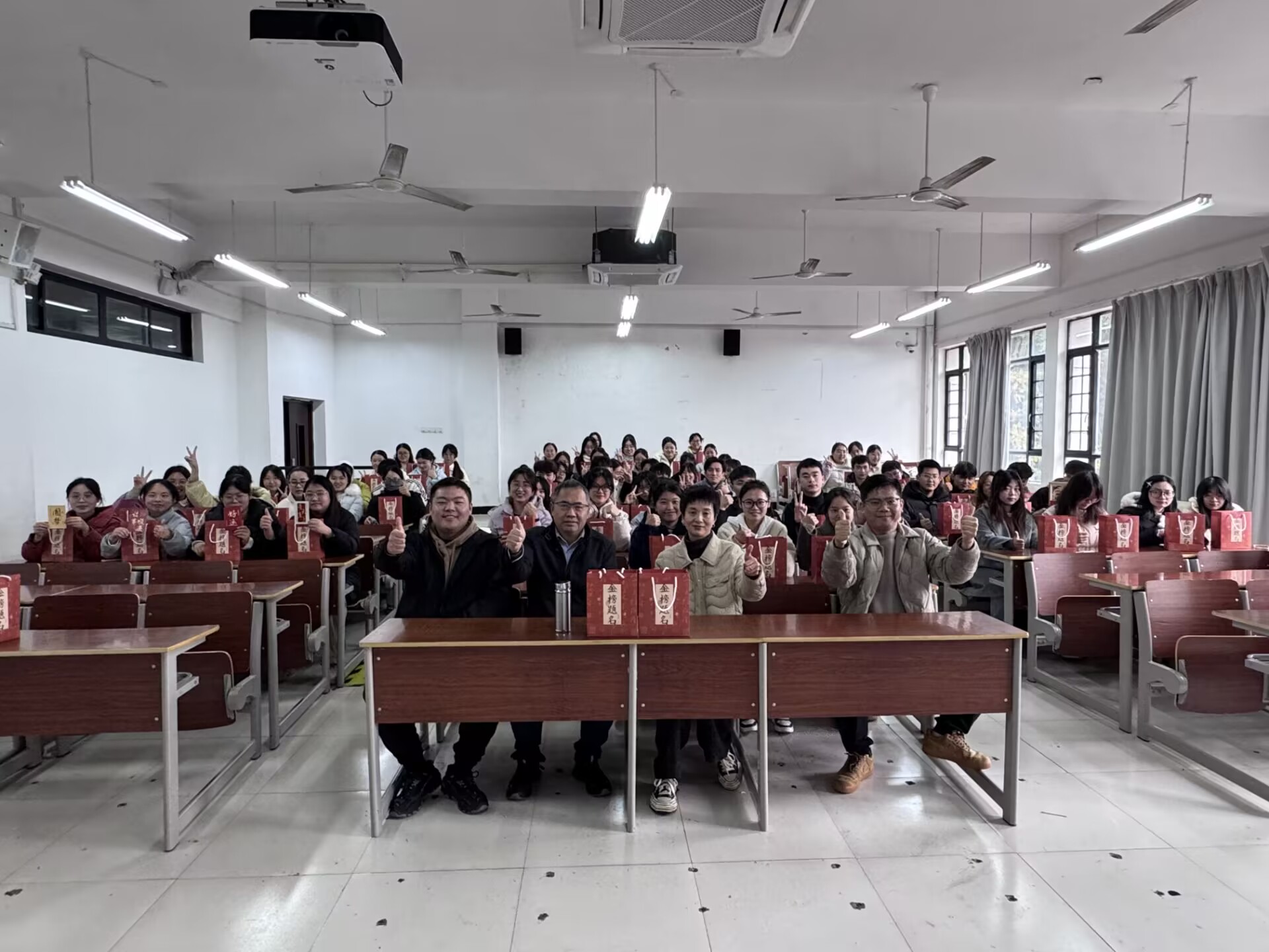 周志荣在动员讲话中充分肯定了同学们为考研付出的努力,鼓励大家坚持梦想、勤学不殆,保持良好的学习状态,全力冲刺,一举成功。朱宏胜为同学们在最后冲刺阶段和考试过程中提出诸多宝贵建议和答题技巧,希望同学们保持自信心、以平和的心态完成考试,同时做到诚信考试。最后,领导和辅导员老师一起为考研学子赠送学院精心准备的礼品,饱含着学院对考研学子的深深祝福和殷切关怀。