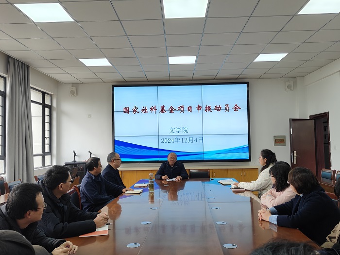 12月4日下午,太阳集团tyc151cc召开2025年国家社科基金项目申报动员会。太阳集团tyc151cc潘定武教授作专题辅导,汉语国际教育专业教师、中青年博士参加会议。院长沈昌明主持会议并作动员讲话,党总支书记汪方学作总结讲话。