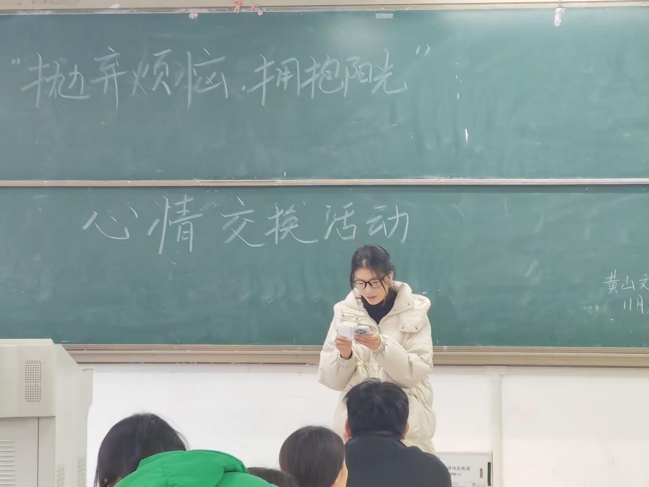 为营造一个更加关爱心理健康的校园氛围,帮助同学们以更积极的心态面对学习和生活,由黄山文学社举办的“抛弃烦恼,拥抱阳光”心情交换活动于2024年11月30日在文端楼圆满落下帷幕。此次活动主题新颖,吸引了许多同学前来参与,通过书写的方式,大家能在活动中找到心理慰藉,提升调节负面情绪的能力,从而促进心理健康的全面发展。