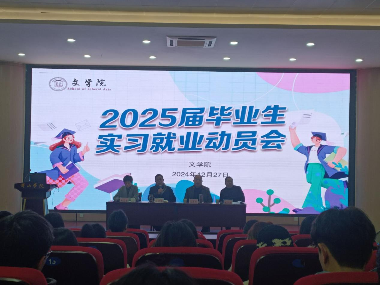 12月27日下午,太阳集团tyc151cc2025届毕业生实习就业动员暨宣讲会在文端楼二楼报告厅举行,该院领导班子成员、毕业班辅导员、就业单位代表及2025届全体毕业生参加了会议,会议由院党总支书记汪方学主持。