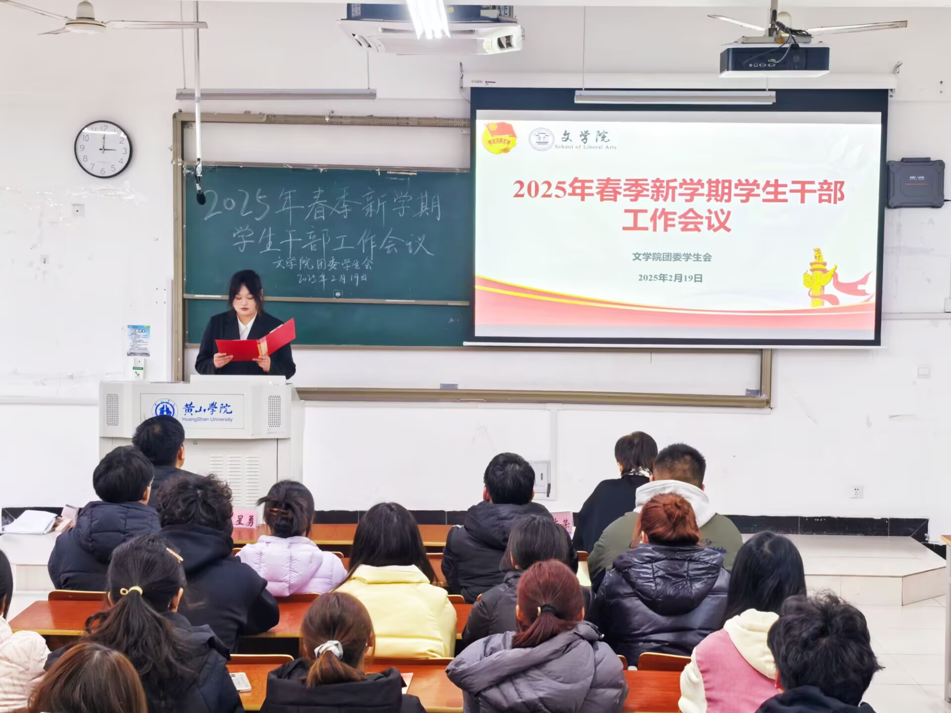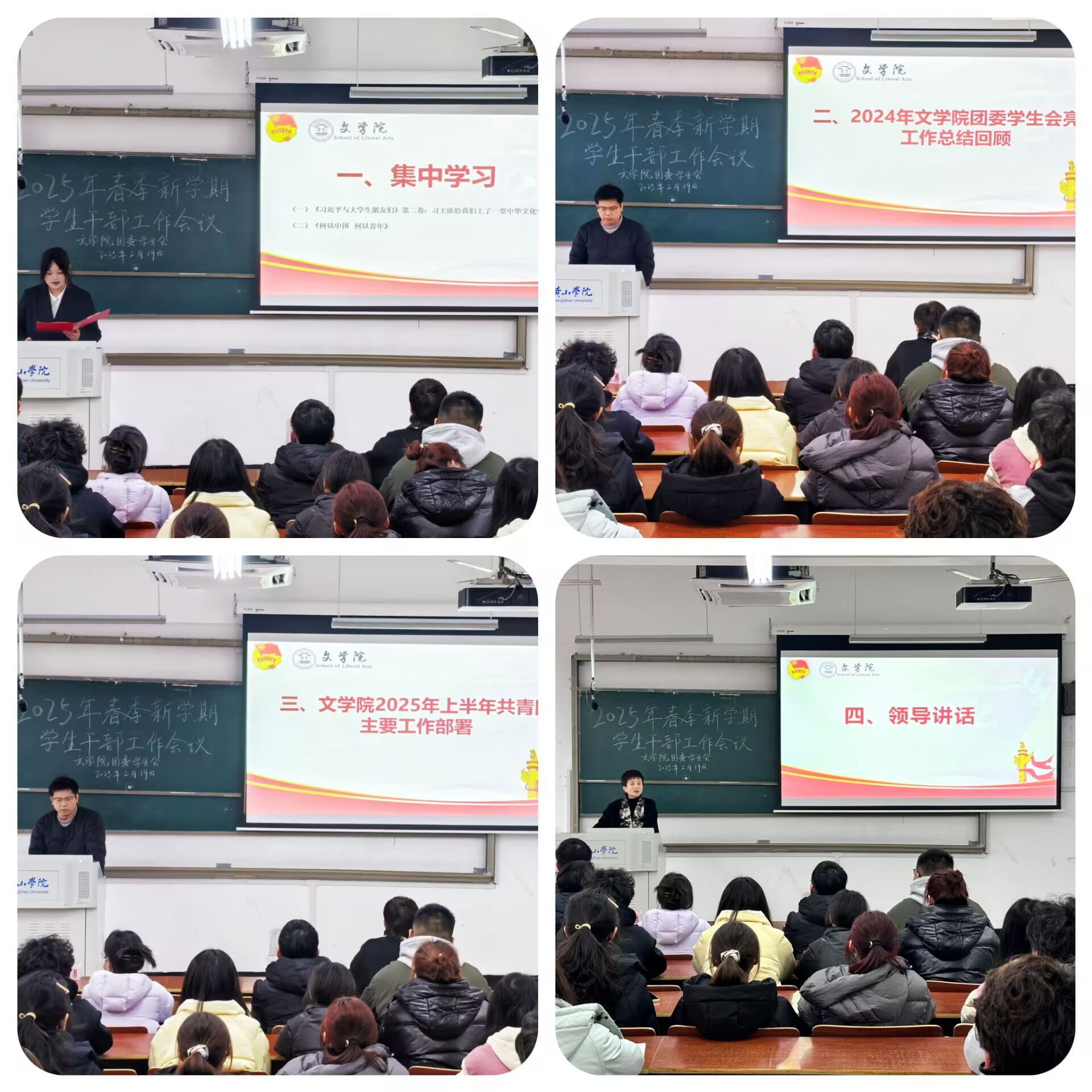 2月19日下午,太阳集团tyc151cc于文端楼2305教室召开2025年春季新学期学生干部大会,院党总支副书记周志荣、团委负责人王星勇以及全体学生干部参加会议。