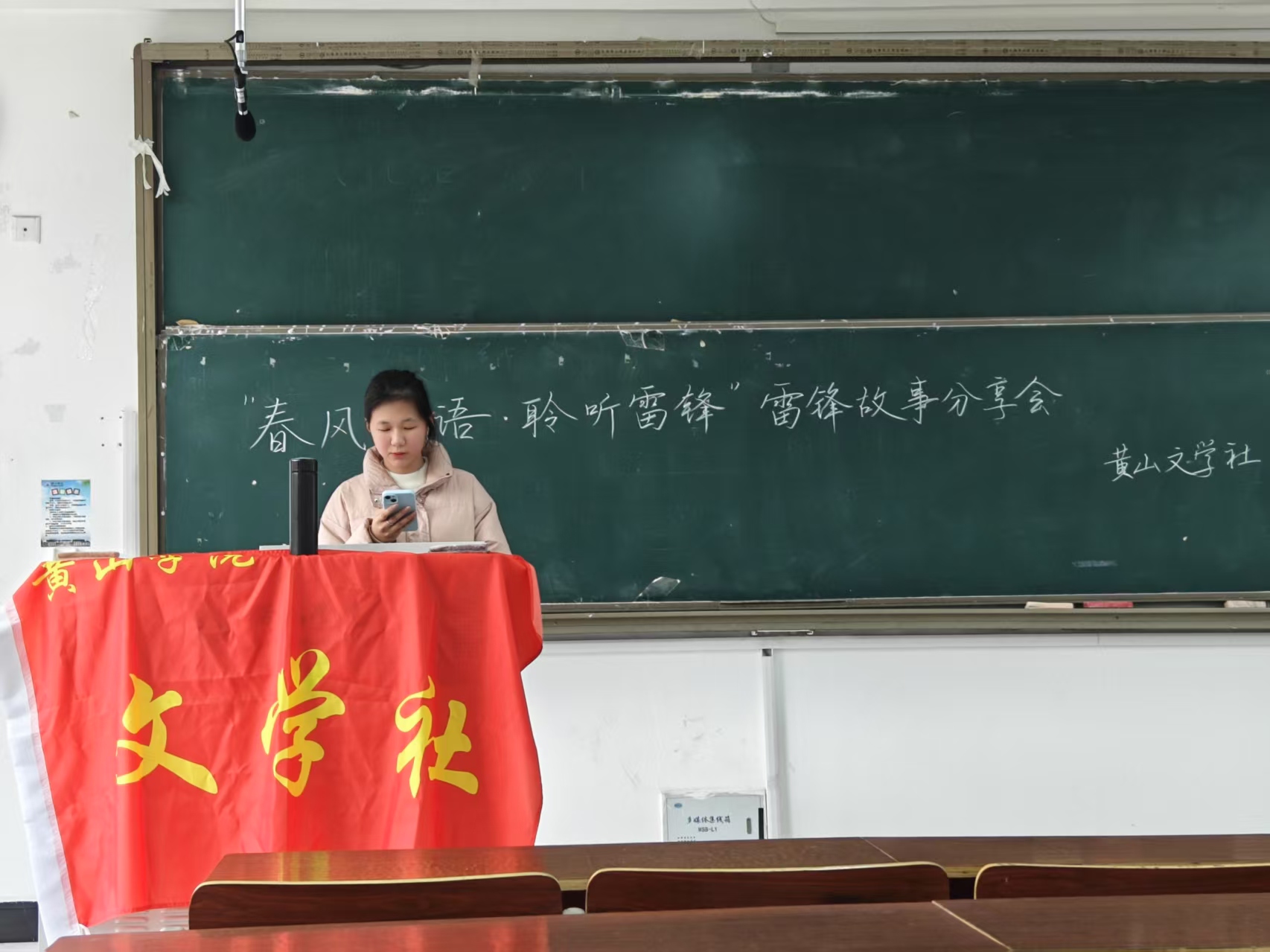 3月16日下午,文学社在文端楼2206教室成功举办了雷锋故事分享会。该会由王绎哲、费媛媛、尹莉莉等人负责维持现场秩序,安排人员签到,引导参与者活动等事项。